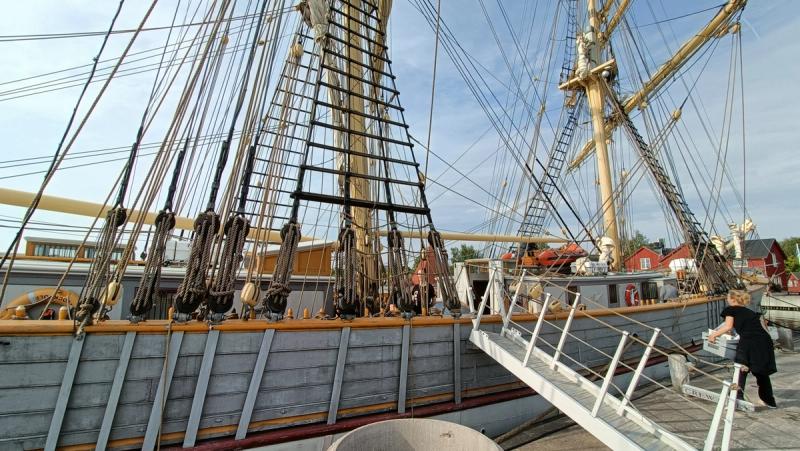 Briggen Tre Kronor af Stockholm är ute på sin första riktiga sommarsäsong under ny ägare. I helgen låg fartyget vid kaj i Mariehamn, innan det seglade tillbaka till Sverige.