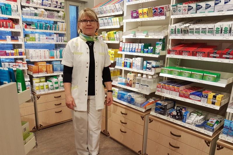 Ingrid Qvarnström är apotekare i Mariehamn och berättar att det har varit svårt att få tag i munskydd, då de är slut hos både tillverkare och grossister.