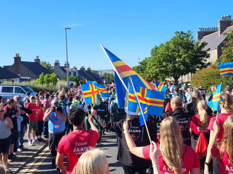 Efter att spelen var öppnade fick startade paraden där Åland gick ut som tvåa efter senaste arrangören Guernsey. Flaggbäraren Kim Berglund ledde truppen ut på Kirkwalls gator som var fyllda av åskådare.
