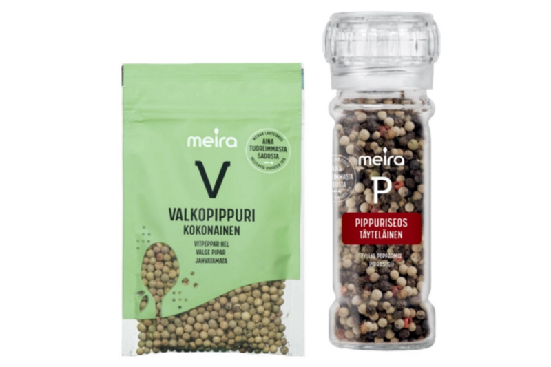 Det rör sig om vitpeppar, hel i 34-gramspåse med bäst föredatumet 29.4.2026 samt fyllig pepparmix utan tillsatt salt i kryddkvarnsform på 49 gram med bäst föredatumen 7.5.2026 och 10.5.2026.