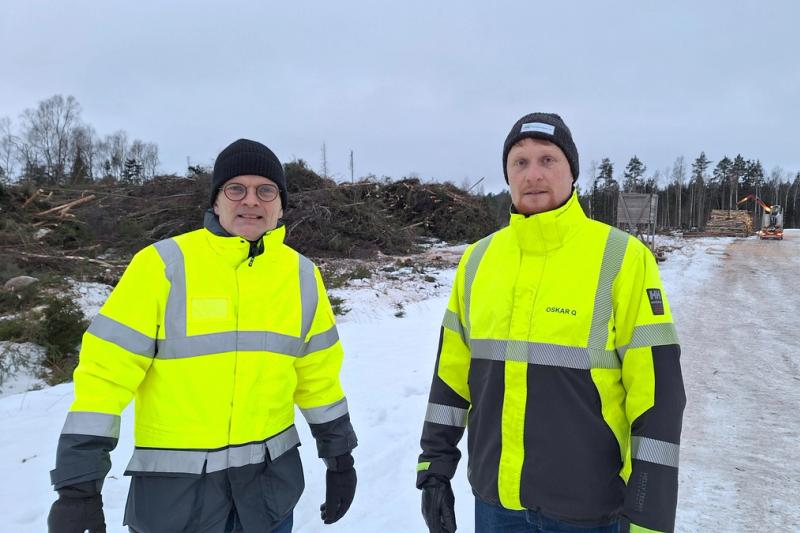 – Man måste ploga bort snön i god tid så att tjälen hinner vandra ner i åkern. Men som du ser är det väldigt fin vinterväg nu, så här hinner vi bra bli färdiga, säger skogschef Oskar Qvarnström.