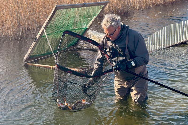 – Vi har en fälla i kanalen som vi vittjar varje dag och registrerar antalet fiskar, främst abborrar men även enstaka gäddor och id, säger Torsten Fredriksson.