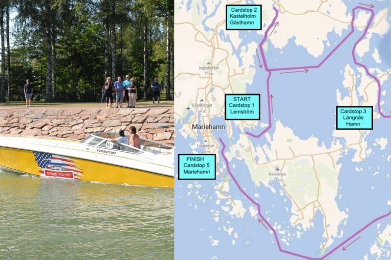Starten går i år vid 12-tiden vid Lemströms kanal med Kastelholms gästhamn som första anhalt. Ekipagen fortsätter därefter över Lumparn, rundar Bomarsund, anlöper Långnäs och stannar för lunch i Degerby på Föglö. Dagens sista etapp går till Mariehamn.