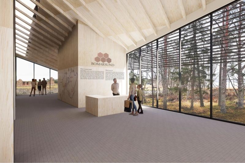 Fastighetsverket kan nu visa upp skisser och animeringar på hur Bomarsunds besökscentrum kommer att se ut.
