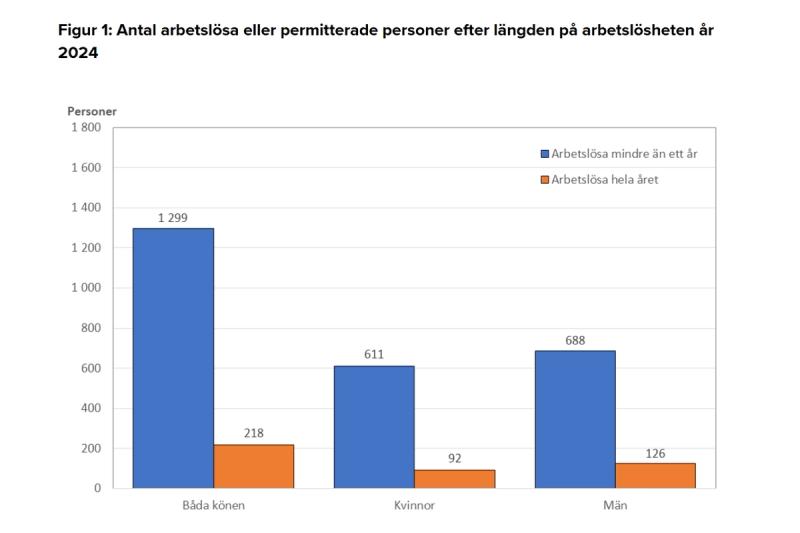Enligt statistik från Ålands statistik- och utredningsbyrå (Åsub) var 770 personer arbetslösa eller permitterade i slutet av år 2024. Av dessa hade 218 personer varit arbetslösa hela året, vilket är en ökning med 34 individer jämfört med 2023 då 184 personer var arbetslösa hela året.