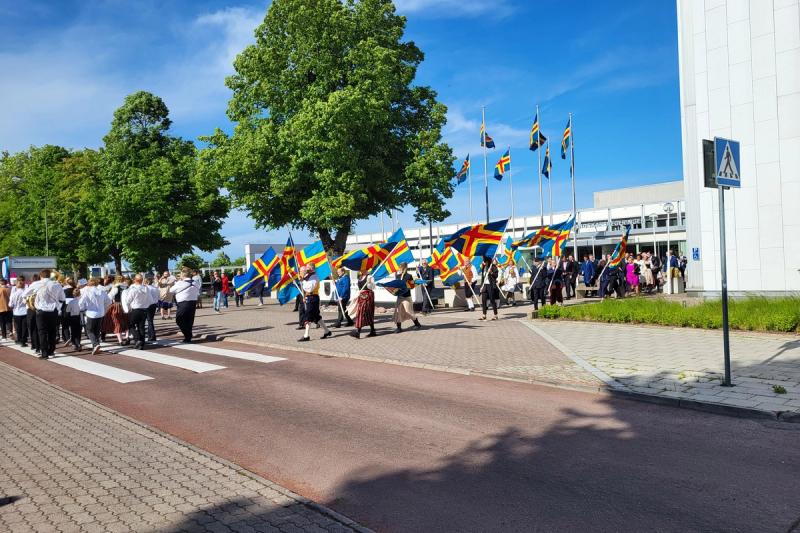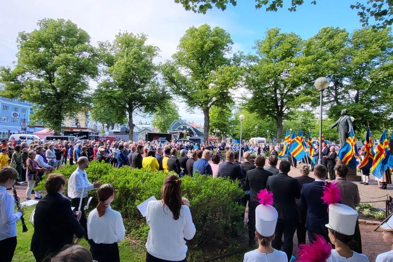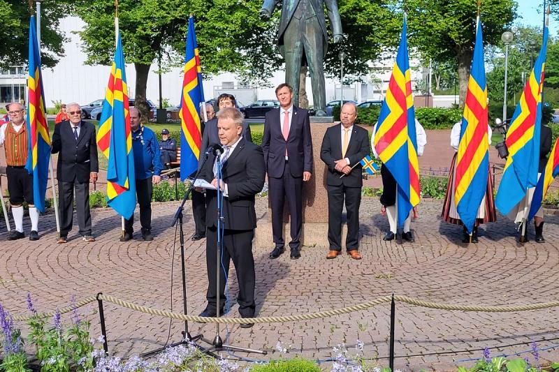 Självstyrelsedagen den 9 juni firades traditionsenligt vid Julius Sundblom-statyn intill torget i Mariehamn.