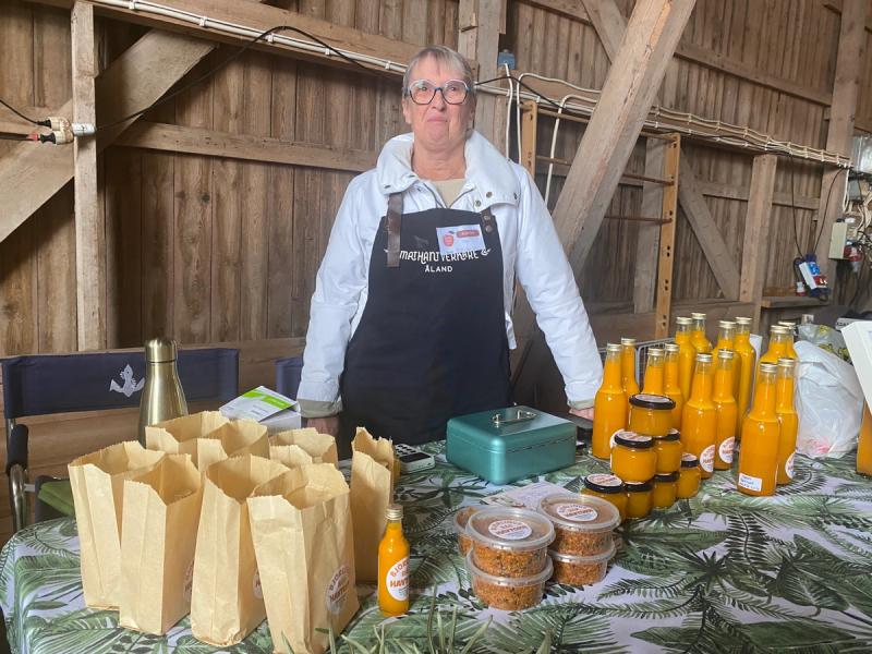 – Det bästa med skördefesten är den härliga stämningen på gårdarna och sedan tycker jag om att det är fokus på åländska produkter och hantverk. Det är kul att få stötta det åländska helt enkelt, säger Josefin Eriksson.