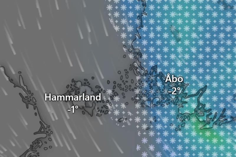 Vid niotiden på tisdagen visar väderkartorna ändå att nederbördsfronten går ungefär längs med Skiftet och rör sig söderut för att sedan vrida mot sydost. I östra skärgården kan det alltså komma en aning snö, men fasta Åland skonas av allt av döma den här gången.