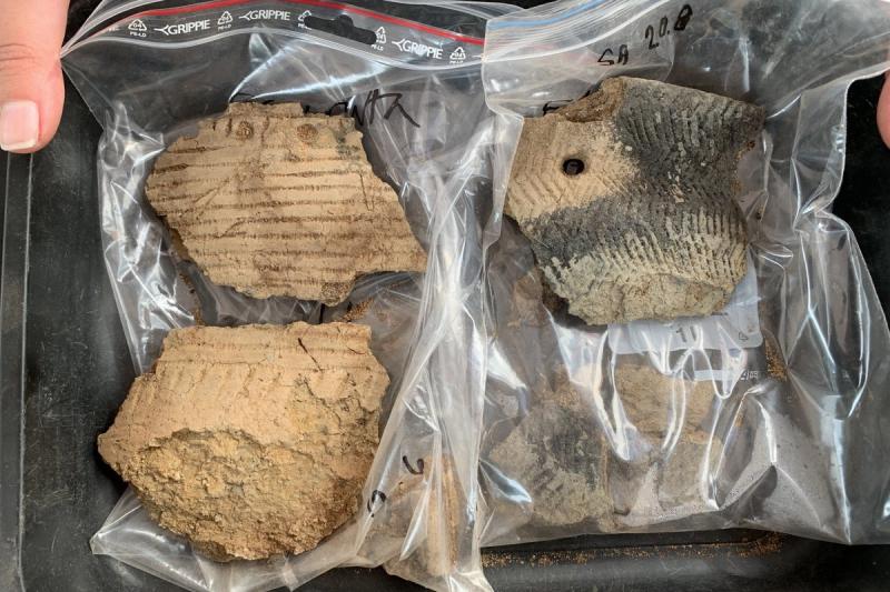 En hel spjutspets av röd lerskiffer, en lerfigur och krukskärvor som visar gropkeramik, som ofta syns på Åland, men också en lokal variant av kiukaiskeramiken som härstammar från sydvästra Finlands kuster. Det är några av fynden från den arkeologiska utgrävningen som pågår i Tengsöda i Saltvik.