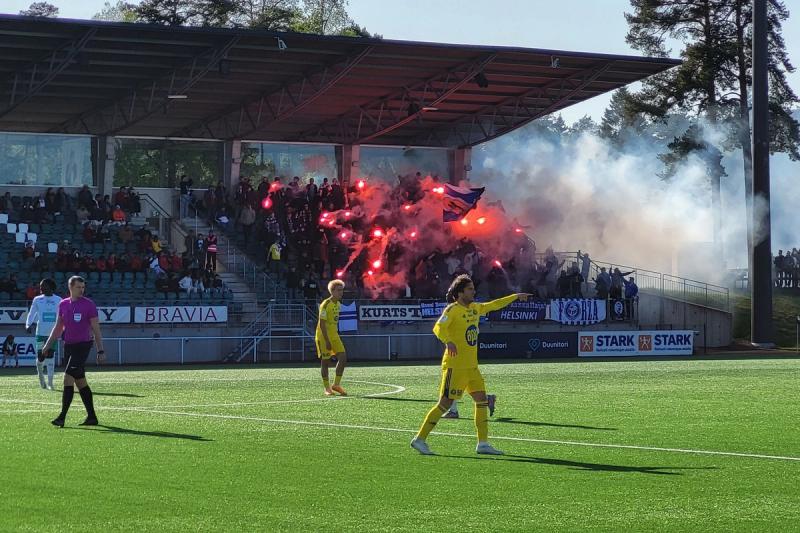 Men trots att de flesta HJK-supportrar kunde visiteras var det många som lyckades smuggla in bengaler som de brände av vid matchstart. Vad det får för följder återstår att se.
