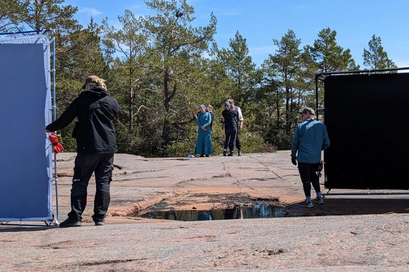 Filmproducent Hanna Virolainen är nöjd med de senaste veckornas inspelningsväder, då man har spelat in scener på udden Havsöra i norra Geta. På Havsöra ställdes omgivningen i ordning redan förra sommaren, med brygga och byggnader, för att bli Maja och Jannes hem på Stormskäret. Här har man också spelat in under både höst- och vintertid. Alla inomhusscener har dock spelats in i en studio i Helsingfors.