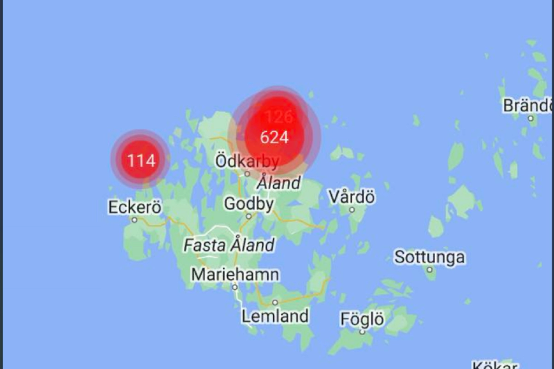 Vid klockan 13.20 var det kort avbrott i Tosarby i Sund, där var orsaken oklar enligt Ålands elandelslag. Vid klockan 14.45 var det avbrott på linjen till Tjurnäs i Sund, där var det kvistar som blåst ner på en transformatorstation.