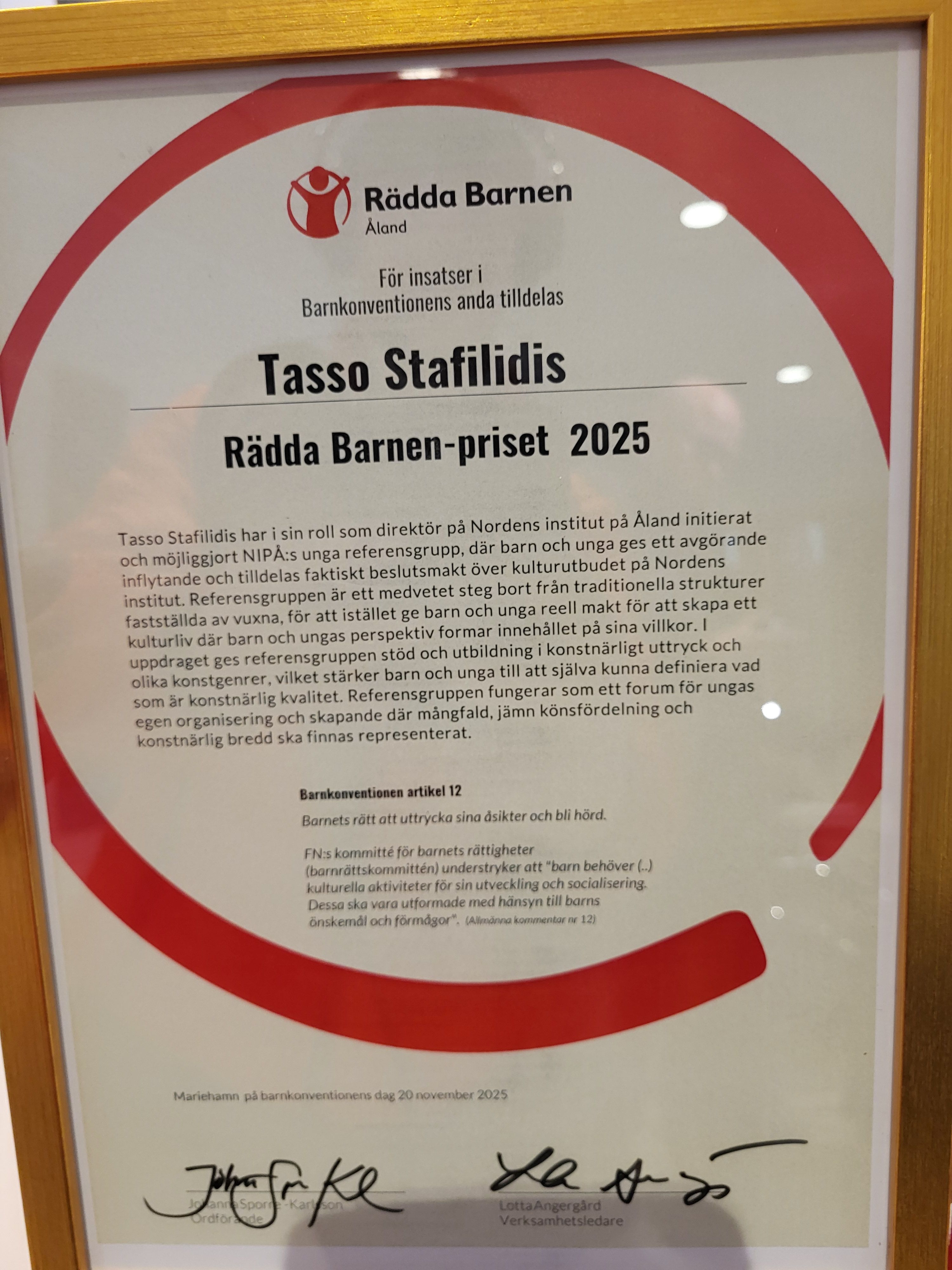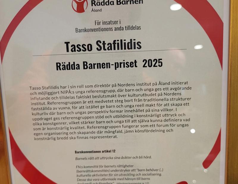 Tasso Stafilidis, direktör på NIPÅ, tilldelades i dag årets Rädda Barnen-pris.