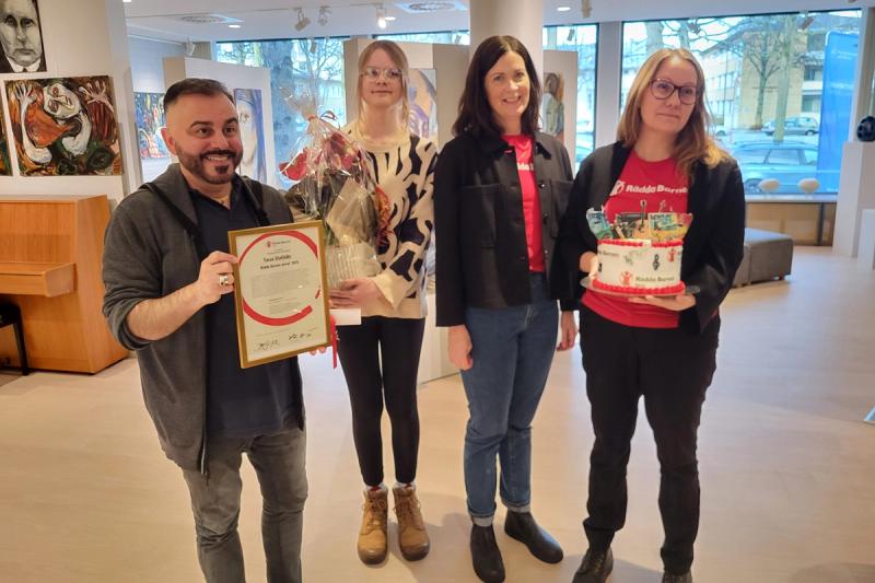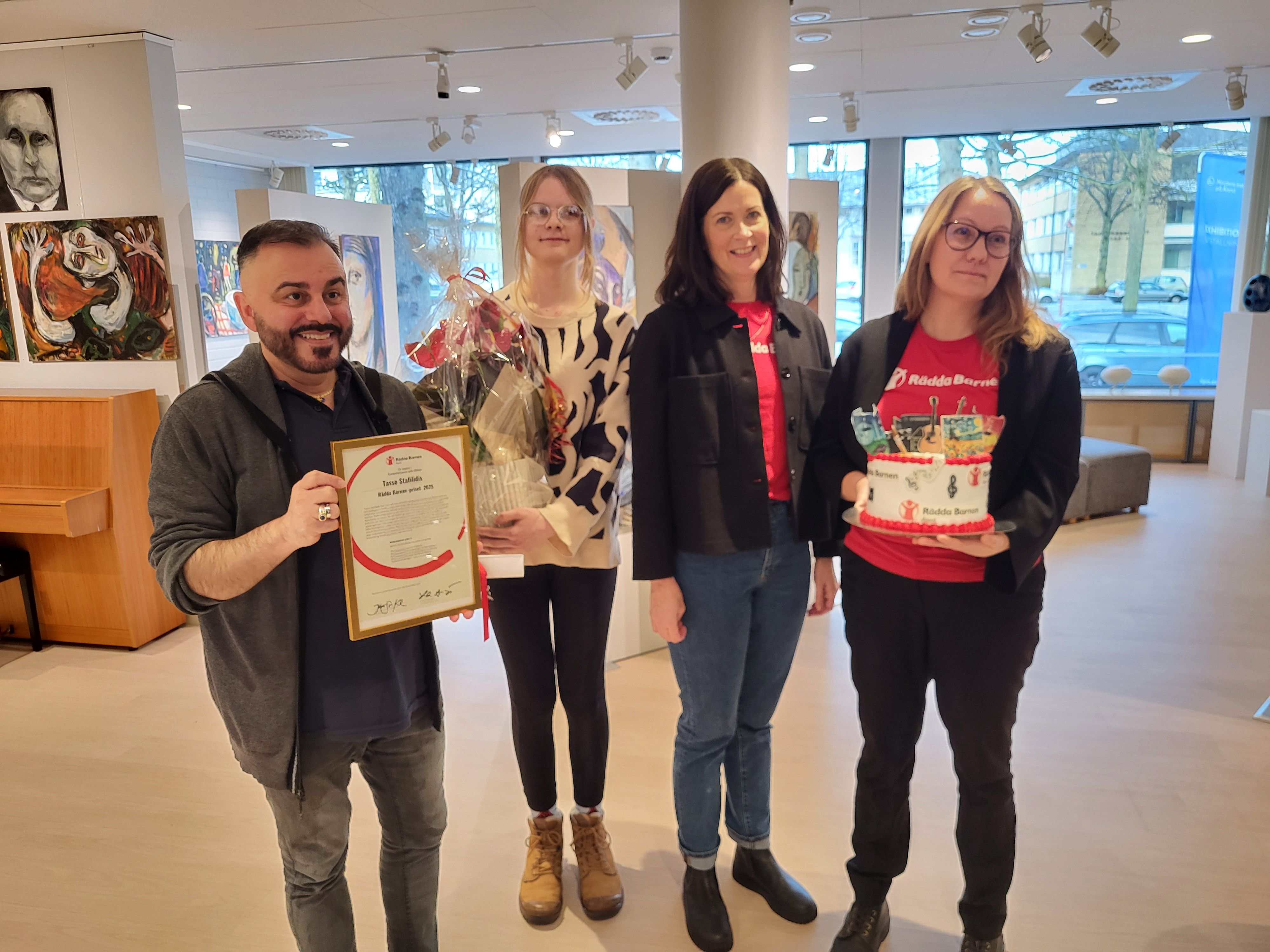 Han överraskades av bland andra Rädda Barnens verksamhetsledare Lotta Angergård.