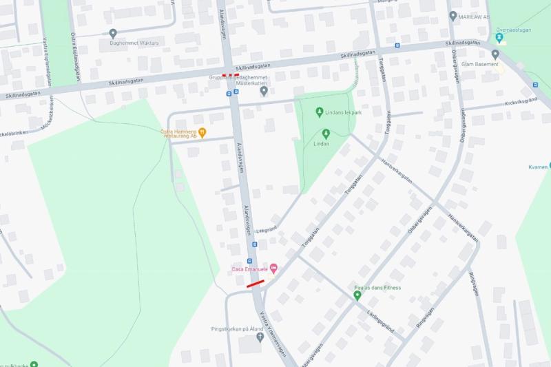 På måndag 29 och tisdag 30 april är det en tillfällig avstängning på Ålandsvägen vid korsningen med Torggatan.