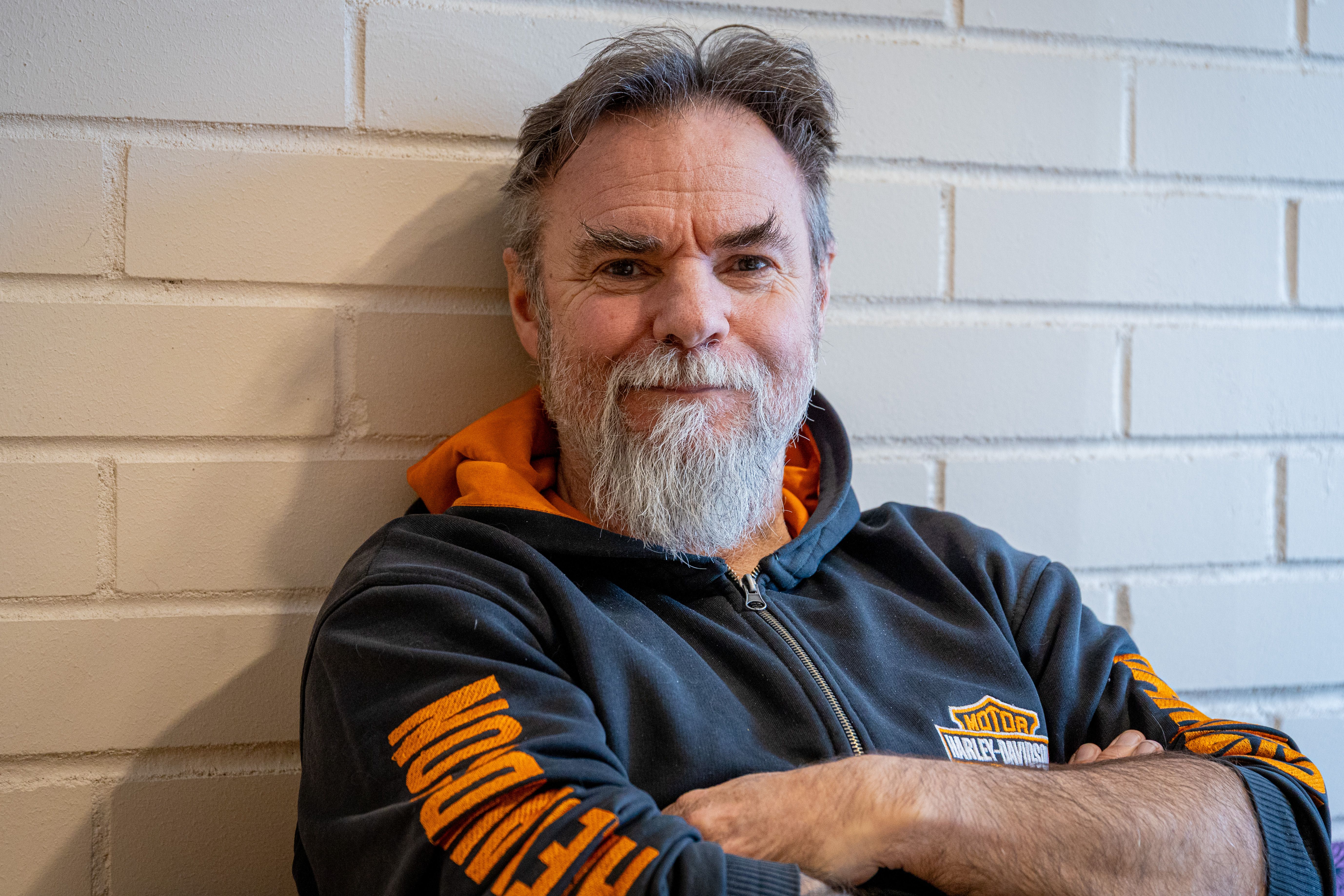 Peter Karlsson tycker själv att han ser mer ut som en långtradarchaffis än som man kanske förväntar sig att en präst ska se ut. Och det kan nog ligga nånting i det - Hoodie med MC-logga, arbetsbyxor, skägg och armar täckta av tatueringar är kanske inte det man mest förknippar med den stereotypa bilden av en präst.