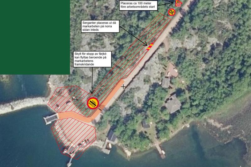 Trafikregleringen gäller från och med i dag den 9 mars fram tills att arbetet med färjfästet är färdigställt.