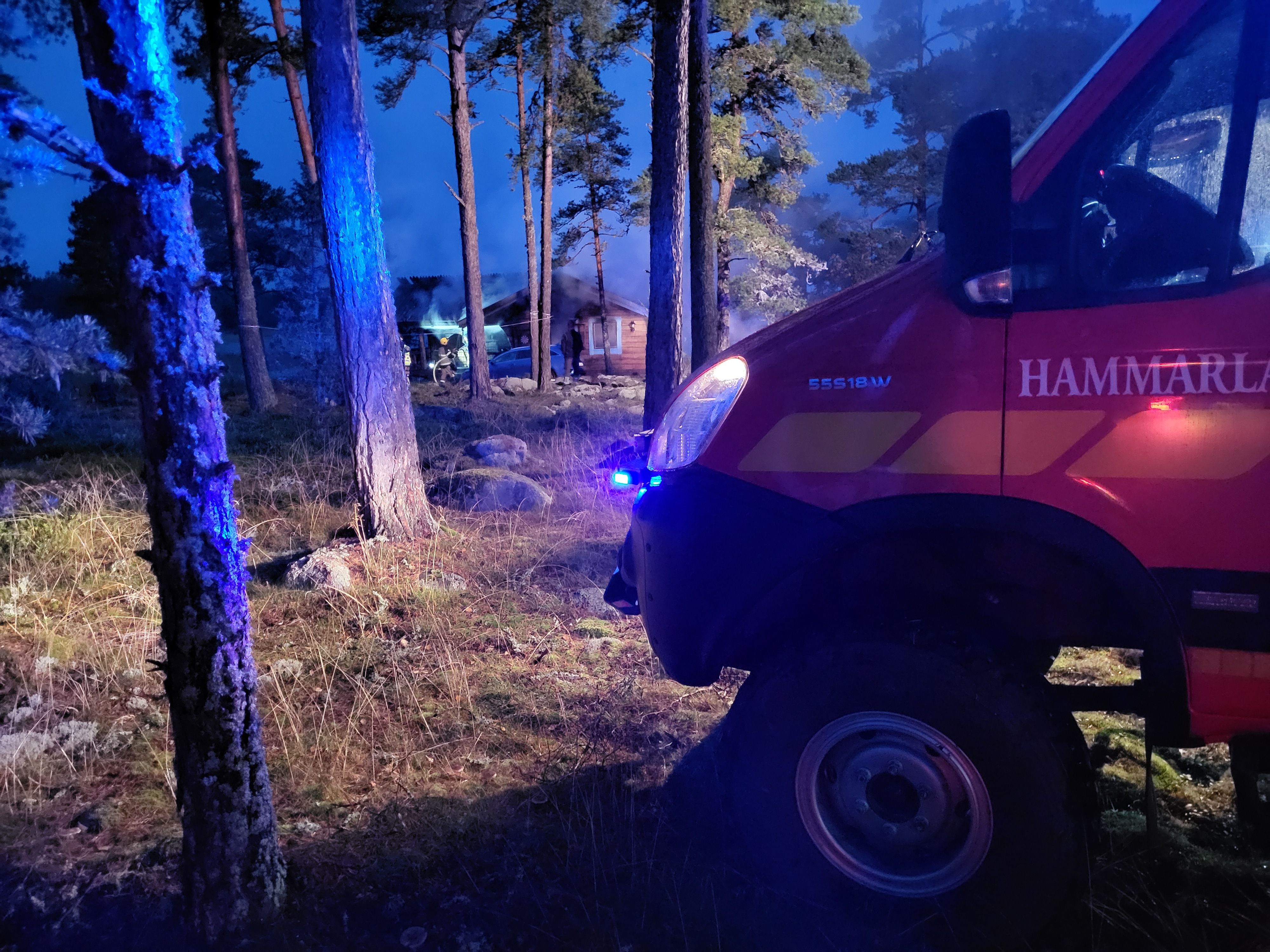 Hammarlands och Gottbys frivilliga brandkårer samt Räddningsverket samarbetade i släckningsarbetet.