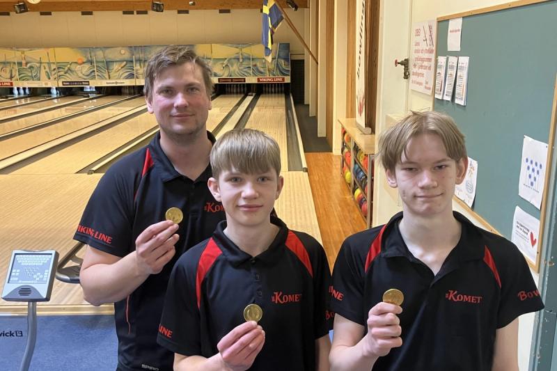 Ungdomarna Alfons Welin, 15 år, och Sander Sundling, 14 år, tillsammans med mer rutinerade Sebastian Cronholm spelade hem Ålandsseriens final i bowling under söndagen.