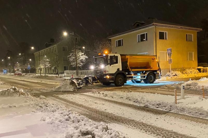 Samtliga landskapets 12 enheter har varit ute och plogat de åländska vägarna i natt.