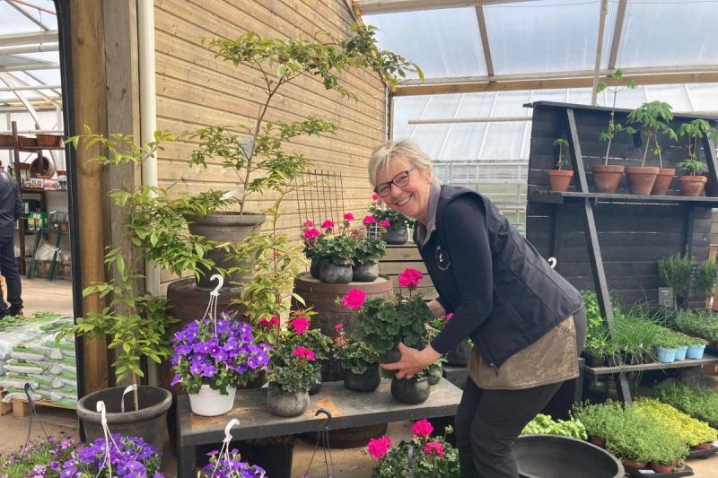 Gerd Karlsson på Stråh Handelsträdgård tror att pandemin, som lett till minskat antal semesterresor, gör att fler har tid att ta hand om sina växter både inomhus- och utomhus.