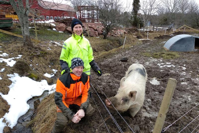 – Vi är väl förberedda, vi har svinpesttrådar runt alla våra hagar, säger Andreas Nordlund på Nygårds skogsgrisar.