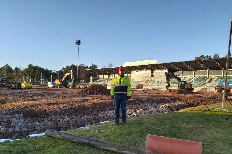 - Vi fixar de sista gruslagen nu, sedan lägger vi ner värmesystemet och vecka 13 kommer konstgräsmattan, säger Dan Engblom.