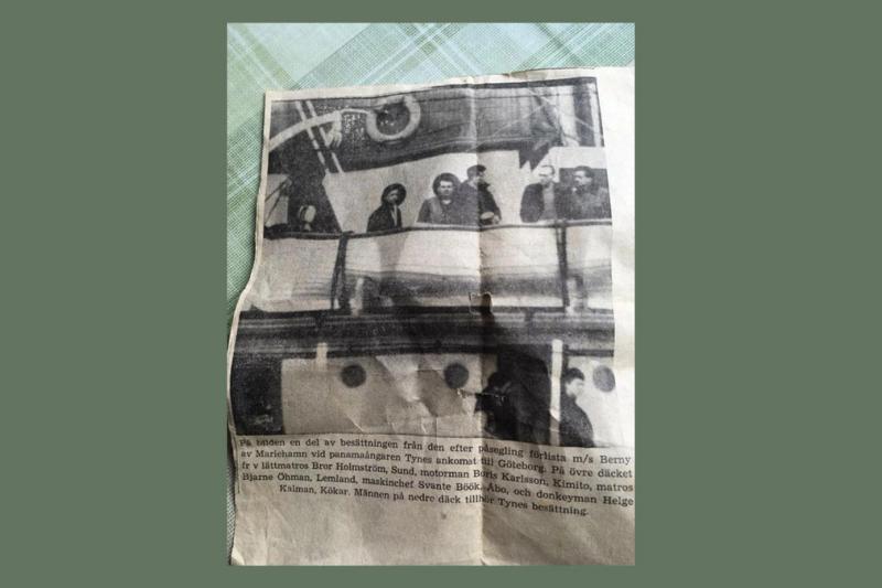 I Åländska berättelser När morfar sjönk berättar Peter Grönholms morfar Helge om när hans fartyg blev rammat på Kattegatt 1961.