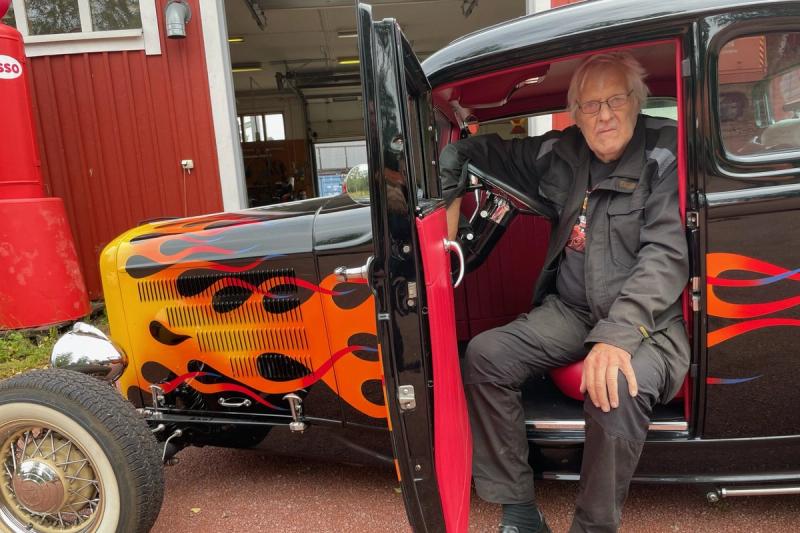 På frågan hur svårt det var att hitta ett exemplar av den ytterst sällsynta bilmodellen, svarar Hans Berglund.
