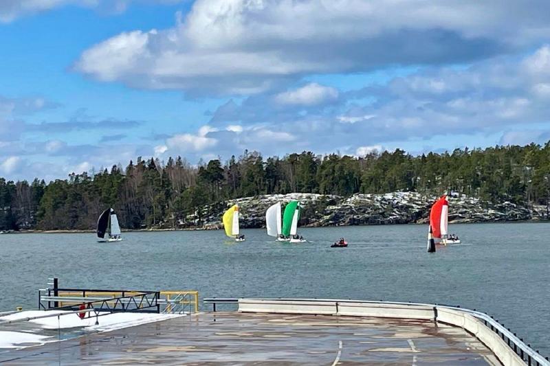 Totalt var sex lag med i Vårregattan som kördes i snö, hagel och dimma under lördagen och i solsken men kyliga förhållande under söndagen.