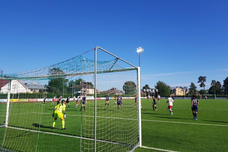 Gästerna tog ledningen redan i den första minuten genom Roosa Bröijer efter slarv hos ÅU. Efter tio minuter fick ÅU en straff som Cassandra Korhonen förvaltade på bästa sätt. Sen var det rätt så jämnt resten av halvleken.