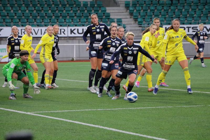 Efter det började HJK sakta men säkert jobba sig in mer i matchen. I den 69:e matchminuten petade HJKs Iiris Holmström en djupledsboll förbi den utspringande målvakten i ÅU, Jessica Kiviaho, och träffade ribban när hon hade öppet mål. Ribbreturen gick bort till straffområdets bortre hörn där HJK-anfallaren hämtade upp bollen och slog ett inlägg som träffade Gabi Rennie. Rennie föll till marken efter att ha fått bollen på sig och domaren pekade distinkt på straffpunkten för hands. Milja Kiviranta placerade den efterföljande straffen åt det håll som Kiviaho pekat åt, medan hon chansade åt det andra.