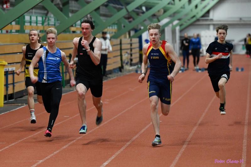 Holmberg tävlar i 17 års-klassen och vann först 60 meter på tiden 7,47, i försöket sprang han tre hundradelar snabbare. Dock ska tilläggas att landets snabbaste 17 åring Tomi Mäkitalo sprang i herrklassen och vann där på 7,13.