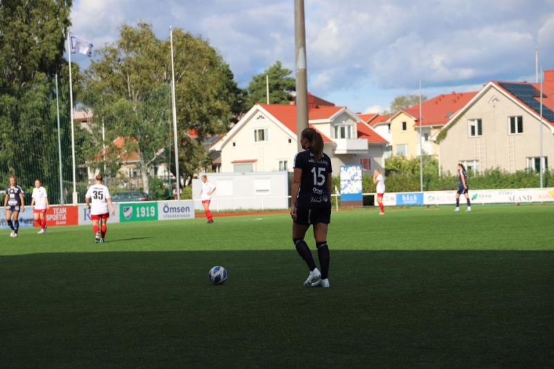 Första halvleken började kontrollerat av Åland United med ett betydande bollövertag och några ganska farliga chanser – men det var ändå Helsingforslaget som var närmast att ta ledningen i matchen. Men ÅU:s Silja Touminen lyckades slå bort en boll som dansade på mållinjen.