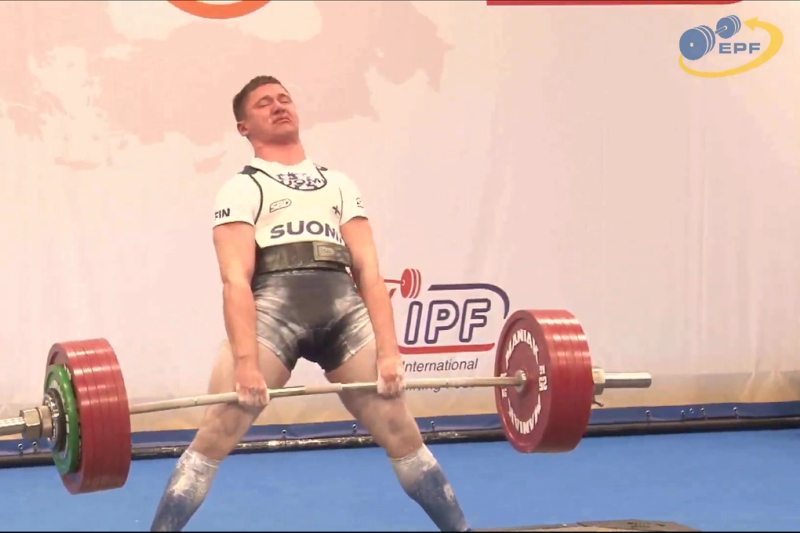 Filip Strand tog nytt finländskt rekord i marklyft i junior-EM i styrkelyft i Druskininkai, Litauen.