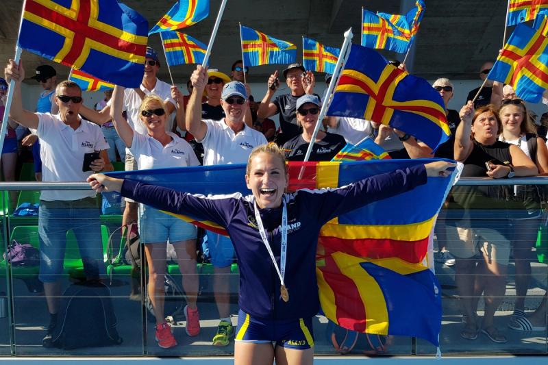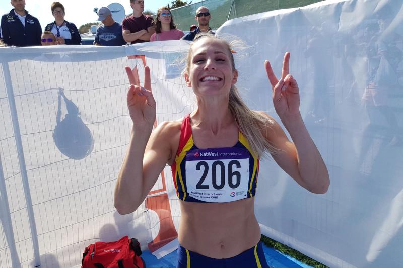 Friidrott: Sara Wiss tog guld i öspelen på 100 meter. I stark motvid segrade hon med tiden 12,83, sex hundradelar före Danika Lyn från Cayman Islands.
