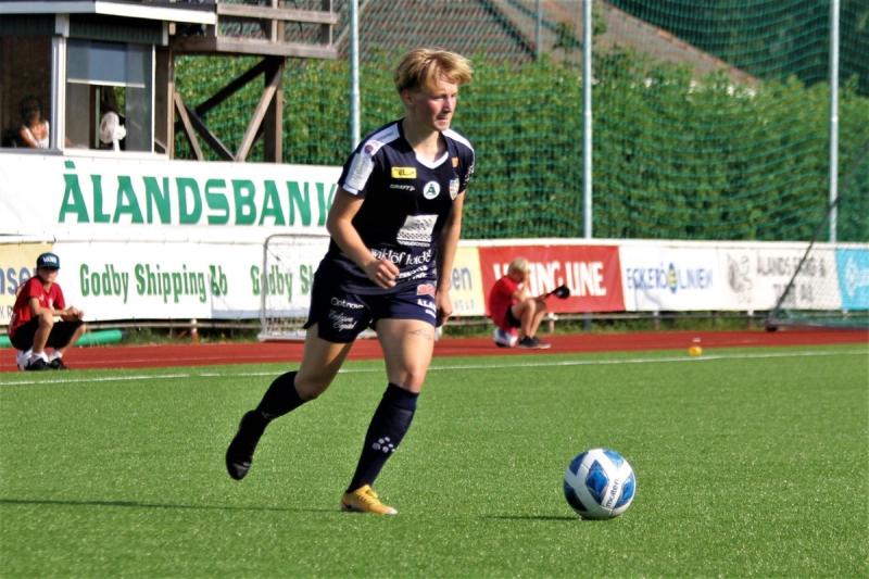 Monica Hagström kom till Åland United inför säsongen 2019 och har hunnit spela 70 tävlingsmatcher för ÅU och gjort 14 mål.
