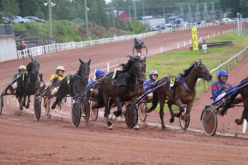 Totalt kördes åtta lopp under kvällen, medan regnet stadigt föll över banan. Det blev ytterligare en åländsk triumf när Jevgeni Ivanov styrde Jeppas Uppercut först över mållinjen i det sjunde loppet. Hästen tränas av ålänningen Elisabet Fellman.
