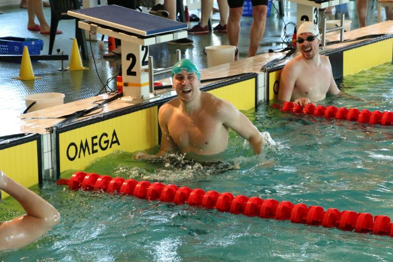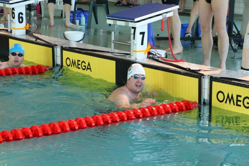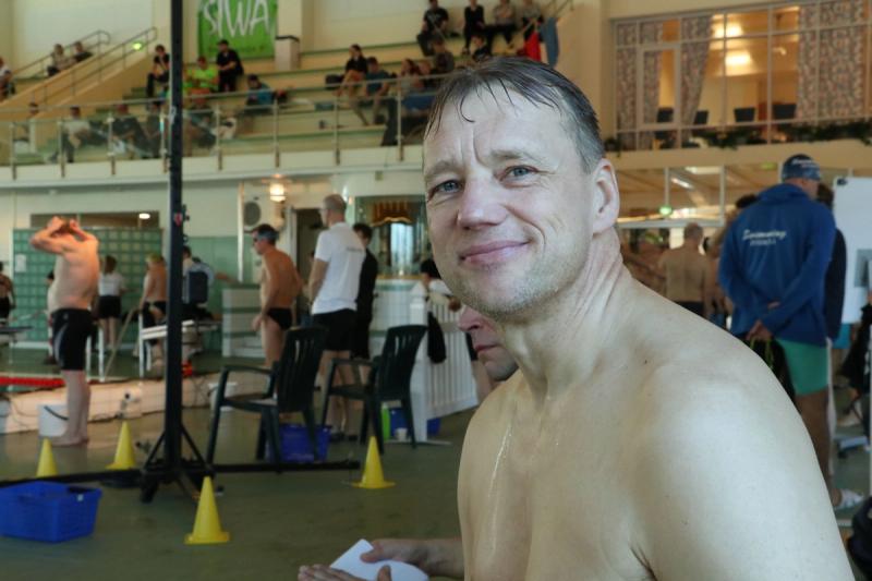 Martin Hougberg kastade sig i tävlingsbassängen för första gången på åtta år då Masters FM ordnades i Ålands idrottscenter i helgen. Facit: Två guld och nya personliga rekord.