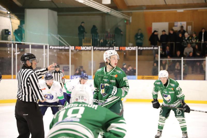 Ålänningarna började matchen piggt och kontrollerat – och utdelningen lät sig inte dröjas. Ilmari Suistio slog en öppnande passning från egen blå linje till kaptenen Jesse Kaupinsalo som bröt sig lös och kunde trycka in matchens första mål.