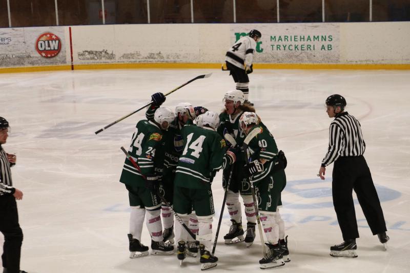 Tidigt i tredje perioden smällde Niklas Kerwien in 6-4 i borta krysset i spel sex mot fem, efter att domaren höjt armen för en avvaktande utvisning. I slutet av tredje kunde både Jesse Kaupinsalo och Pontus Nylén göra varsitt mål i powerplay för IFK Mariehamn.