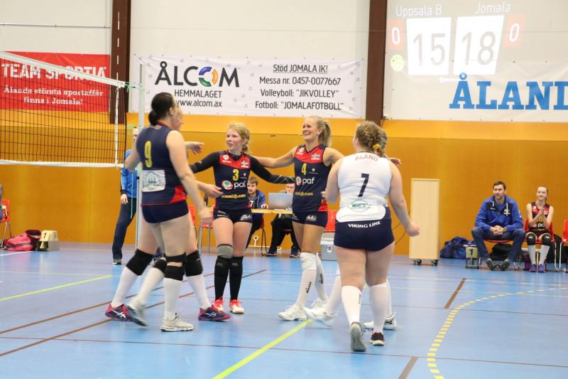Volleyboll. Jomala IK:s damlag vann söndagens hemmamatch mot Uppsala B med 3-0. Det var den tredje matchen för den här säsongen och hittills har JIK inte förlorat ett enda set.