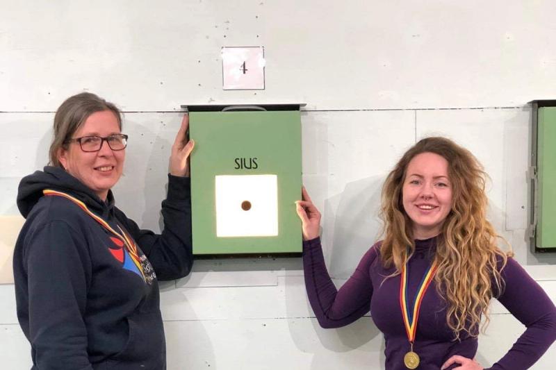 Elin Liewendahl blev åländsk mästare i luftgevär i går kväll när hon gjorde upp om titeln tillsammans med Kristina Nordlund.