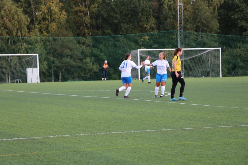 Linda Welander var det som inledde målskyttet i den 25:e matchminuten för Jomala IK och Elin Holmström utökade till 2-0. Dock blev det en snabb replik från Lluja när Säde Kuusisto reducerade på första halvlekens tilläggstid.