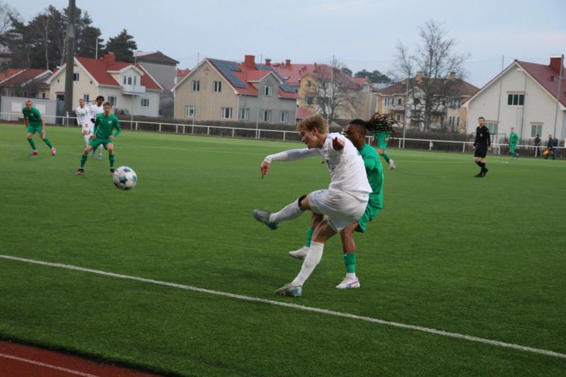 Det var en fartfylld inledning, då det blixtrade till för båda lagen. IFK-anfallaren Cody David tryckte in en målvaktsretur i mål i den femte matchminuten, men linjedomarens offsideflagga hade glidit upp. Några minuter senare drog Robin Sid i Ekenäs IF iväg ett skott utanför straffområdet som seglade strax över ribban.