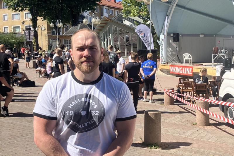 – Det var mycket folk som strosade runt och fastnade här på torget och följde tävlingarna, säger Kenneth Sandvik från Ålands kraftsportsklubb.