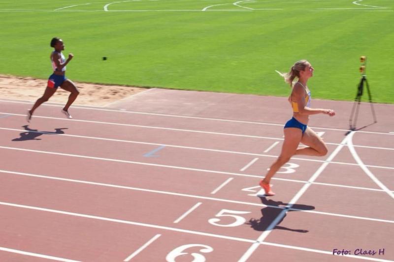 Julia Henriksson vann på tiden 11.55, Daniella Busk slutade tvåa på 11.71 och trea blev Filippa Sivnert på 11.73. Wiss passerade mållinjen efter 12.02.