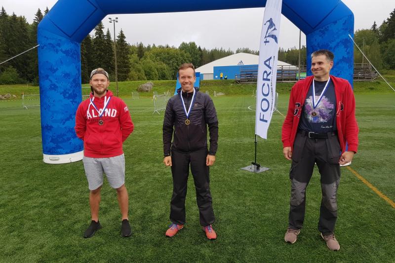 Tävlingen avgjordes i Vörå under lördagen. Pontus Sjöblom var näst snabbast i mål av de 116 deltagarna som fullföljde loppet. I hans egen åldersklass 25-29 fanns det bara två löpare, så där blev det guld, liksom för Hannes Sjöblom som var ensam i klassen 15-17 år. Owe Sjöblom segrade i det sex man starka fältet i klassen 50-54 år.