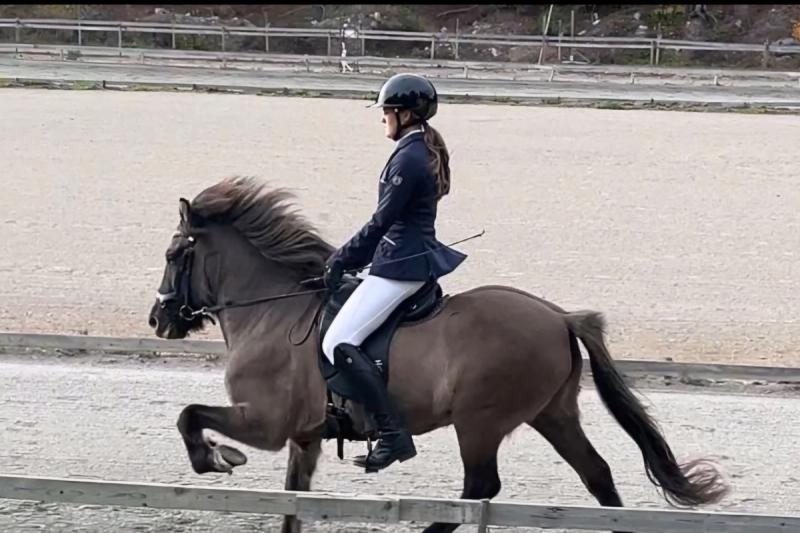 Heini Lindqvist i klassen young rider, kvalade in med Framför frá Helgatúni i P2 speedpass och med Sædís frá Mið-Fossum i V1.