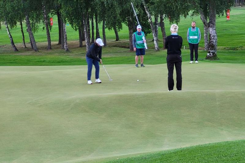 I morgon lördag spelas den tredje och sista rundan och i ledning är svenskan Lisa Pettersson och Ana Pelaez Trivino från Spanien på fem slag under par. Bästa finländska är Ursula Wikström på åttonde plats med ett slag under par.